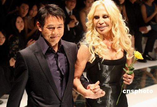 圖:李連杰與Versace在四川探訪兒童