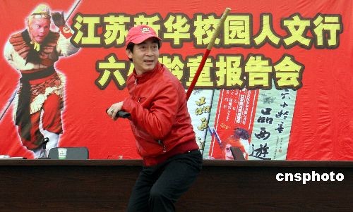 圖:六小齡童和學(xué)生分享西游文化
