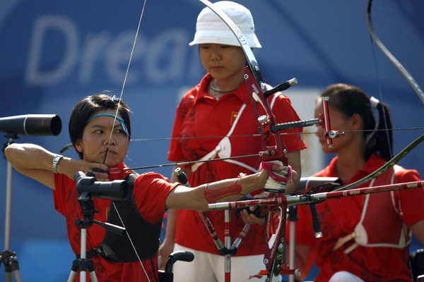 9月15日,北京殘奧會迎來第九個比賽日的征程,產生50枚金牌。其中游泳在最后的比賽日產生17枚金牌,另外一個金牌大戶田徑產生18枚金牌。15日上午在國家體育場進行的女子鐵餅F42/44/46級決賽中,中國隊包攬了金、銀、銅三枚獎牌,金牌總數(shù)達到64枚,超越了雅典殘奧會的63枚。