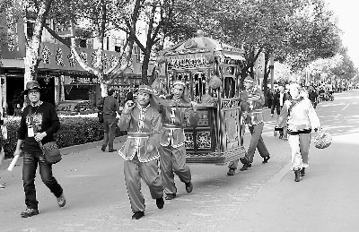 11月14日,來(lái)自武夷山五夫鎮(zhèn)的民俗表演隊(duì)在武夷山度假區(qū)進(jìn)行當(dāng)?shù)孛袼谆閼c彩排。第四屆海峽兩岸茶葉博覽會(huì)暨武夷山茶節(jié)將于11月16日在武夷山開(kāi)幕。富有武夷山地方特色的民俗表演將亮相茶博會(huì)。邱汝泉 攝