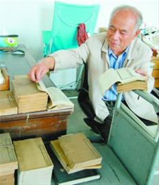 在遼寧省圖書館6樓特藏部的辦公室,年近古稀的韓錫鐸輕輕翻閱著紙頁發(fā)黃的線裝書,旁邊的推書車上,整齊地擺放著一摞摞古籍——