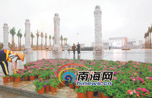 近一個星期來,儋州城區(qū)張燈結(jié)彩、百花綻放喜迎歡樂節(jié),城區(qū)內(nèi)懸掛大紅燈籠5000余個、燈桿廣告旗2000余幅,擺放鮮花15萬盆。(李關(guān)平 黃遠舶 郭樹護)