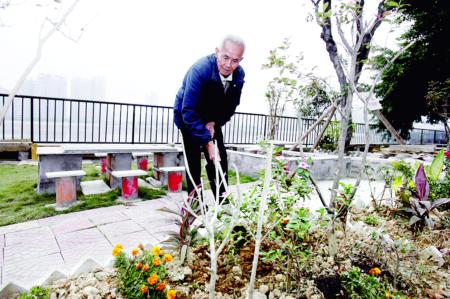 “砌椅子的水泥是附近工地送給我的,這些樹是我用幾包煙換來的!”鄭依伯對自己一手建起的“公園”頗有些得意。他每個月也就千把元退休金,所以得力爭花小錢辦好事。鄭依伯人緣好,除了那幾株桂花樹和盆栽鮮花讓他投資了三百多元,其他的石材、花木都來自好心人的饋贈。老人手上那把造型獨(dú)特的花鋤,是他這個昔日的“全省勞!闭讨檬炙囉H手做的;那十幾張桌椅,是他自己動手砌的。最后,他還掛上個牌子———“愛護(hù)花園人人有責(zé)”。