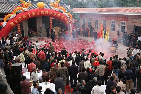 在慶祝大會現(xiàn)場鞭炮齊鳴、彩旗飄揚,來自中山、陽春、香港、江西等16個地方的崔氏宗親送來賀禮,共同祭祖和慶祝崔世安先生榮任澳門特首的喜事。其中,專程從北京趕來的中華崔氏歷史文化研究會的宗親團在慶祝會現(xiàn)場致賀詞說,崔世安先生當選澳門特首,是一件光宗耀祖的大喜事,他們?yōu)樽謇锍隽诉@樣優(yōu)秀的人物,感到十分自豪,希望崔世安先生帶領澳門人民開創(chuàng)更美好的未來。他們并提到此行不但是要與崔氏鄉(xiāng)親一同慶祝,也是為了明年1月2日在山東舉行的中華崔氏會能更好地介紹崔嘉亨這個地方,