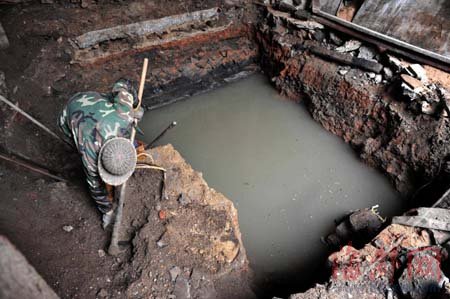 昨天(28日)上午,記者來到血池殿,已有十多位附近居民圍著重見天日的“血池”參觀。60歲的林長欽依伯告訴我們,當(dāng)時工人剛剛挖開地面,看到水面,以為只是地下水道,并沒有在意,等到整個池塘挖出時,大伙兒才覺得可能有點兒名堂。
