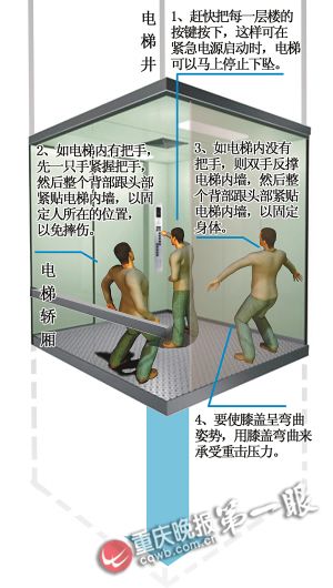 1、保持鎮(zhèn)定,電梯井有防墜安全裝置,會(huì)牢牢夾住電梯兩旁的鋼軌,電梯一般不會(huì)下墜。