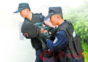 “快,注意,嫌疑犯到了!眲偺萝嚿形凑痉(wěn)的警察對圍上來的戰(zhàn)友說。