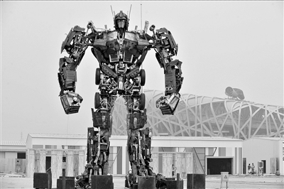昨天上午,一座高度達(dá)到近10米、由廢舊材料拼裝成的“變形金剛”悄然現(xiàn)身于鳥(niǎo)巢北側(cè)廣場(chǎng)。這個(gè)大家伙來(lái)自臺(tái)灣,是目前國(guó)內(nèi)最高的變形金剛,將展出到10月10日。