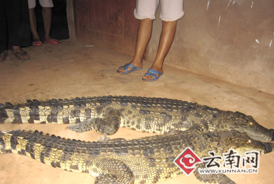 據(jù)西雙版納自然保護區(qū)勐臘派出所的所長代旭介紹,他們趕到現(xiàn)場后,發(fā)現(xiàn)這兩條兩米多長的大鱷魚正趴在李明周的家中,沒有人敢靠近。檢查后也沒有什么外傷,便將其帶回派出所暫時看管。但是,兩條鱷魚是不是中國原產(chǎn)鱷魚,為什么會出現(xiàn)在小磨公路的隧道中?警方表示還在調(diào)查。