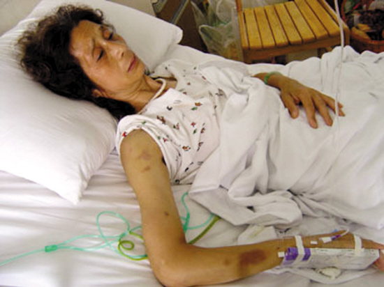 據該帖描述,陳玉蓮頭上、身上、胳膊上、腿上遍布傷痕。診斷結果是,她被打成腦震蕩,軟組織挫傷幾十處,左腳功能障礙,植物神經紊亂……她躺在病床上,渾身哆嗦,嘔吐腹瀉不止,發(fā)燒幾天,身心受到了重創(chuàng)。陳玉蓮的妹妹陳翠蓮昨晚接受羊城晚報記者采訪時說,陳玉蓮剛打過針,因腦震蕩影響,正在病床上昏睡,而她左腳至今無法踏地。
