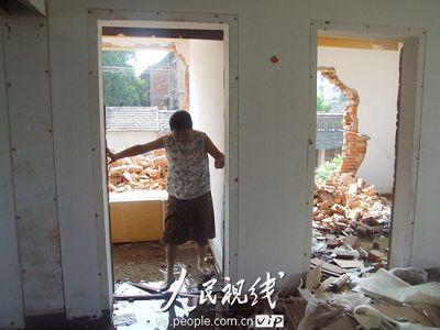 “安置補(bǔ)償還沒有談妥,開發(fā)商就開始打毀砸山墻和樓頂,采取斷水、割樓梯等手段逼迫我們搬走!2010年8月18日,家住安徽省巢湖市小王莊供電局宿舍樓的六旬老人劉秀芝,向記者反映了她們家遭遇逼迫式拆遷的遭遇。她說,由于開發(fā)商野蠻拆遷,她所居住的那幢樓房幾乎成了一座危樓。如果沒有得不到一個(gè)合理的說法,她們一家人將在在危房里堅(jiān)持到底,誓死不搬。
