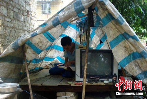 此后,吳萬杰的父母則擠在不到五平米的小廚房里,拿門板當床入睡。而吳萬威便一直“蝸居”在為躲避洪水而建的樹上“小棚”上。不久,吳萬杰高考完回家,因無處居住,吳萬威便在撿來些木棍、木板又幫吳萬杰在樹上搭了個棚,并在棚內(nèi)拉上了電燈。兩兄弟就這樣在樹上住了近半個月。有樹下過路人嘲笑他們住“鳥巢”,也有好心人提醒他們:電燈線路沿著樹感極易導電,打雷下雨天住在很危險。于是,兩人又將樹上的“小棚”搬到地上。然而地面泥土潮濕,“小棚”空間過于狹小加上蚊蟲叮咬厲害,弟弟便讓哥哥萬杰進廚房與父母同住。而弟弟自己一個人至今依舊“蝸居”在外面的小棚里。在此期間,吳萬杰接到了來自長江大學的金融學專業(yè)錄取通知書。