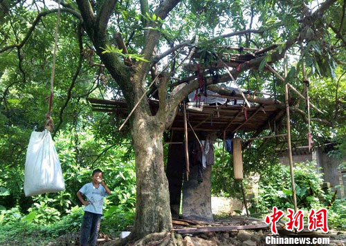 2003年時,吳萬杰家在玉州區(qū)城西街道的泥土房被大雨沖垮。房子倒塌后,吳萬杰一家便寄宿在已經(jīng)過世的外婆家僅剩的幾間泥磚房里。今年6月,連夜大雨帶來的洪水再次沖走了他們賴以生存的房子。眼看著洪水漲到家里窗戶以上,留守家中的弟弟吳萬威急中生智抽出家里的床板,在屋子旁的龍眼樹上搭建了個臨時的小棚。吳萬杰的父母和弟弟就是躲在樹上這個小棚才得以堅持到消防員前來救援的。洪水快要消退時,除了廚房,其余的房間已經(jīng)全部倒塌。