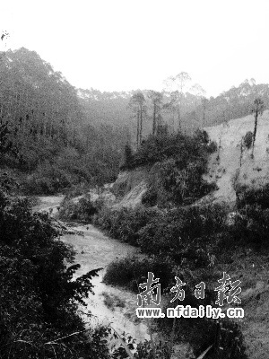 10月11日,記者在知情人指引下,從省道252線東壩村路段一條岔路口進去尋找礦點。進山后山間僅兩米寬的泥濘路面跌宕起伏。每天從山里出產(chǎn)的珍貴白色稀土就是從這條山路運出。經(jīng)過3公里的山路顛簸后,記者找到了第一個礦點。