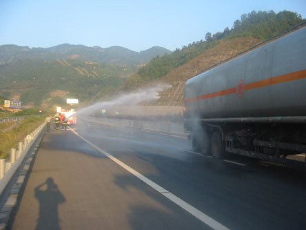 泄漏事故發(fā)生后,尤溪消防、交警、路政等部門人員先后趕到現(xiàn)場(chǎng)排險(xiǎn)。福銀高速洋中段被緊急關(guān)閉,方圓3公里村民也被疏散。