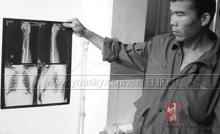 下午1時20分,被兒子背逃回大白硝塘村民小組家中的彭從文醒來后,立即忍痛吩咐兒子打電話給勐養(yǎng)保護區(qū)報案。勐養(yǎng)保護區(qū)管理所接報后,副所長王仕華立即帶人于18日22時將彭從文送進景洪市云南省農(nóng)墾總局第一職工醫(yī)院搶救治療。經(jīng)醫(yī)院實行CT檢查,確診彭從文為右尺橈骨骨折、右鎖骨骨折、右第二肋骨骨折。
