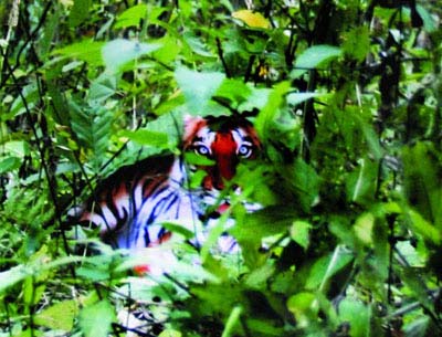 這是周正龍用數(shù)碼相機拍攝的第24張野生華南虎照片,也是整組照片中成像最好的一張(局部裁剪圖)