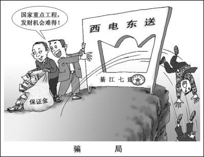 重慶市綦江縣兩個有犯罪前科、只有小學和初中文化程度的人,合伙編造了一個彌天大謊:要搞一個和北京2008年奧運會配套的國家重點工程——“西電東送”。就是這樣一個彌天大謊,竟然在綦江縣13個鄉(xiāng)鎮(zhèn)大行其道,眾多的老板、農(nóng)民上當受騙,造成損失共計800余萬元。本報(檢察日報)2007年5月9日對此案作過報道后,日前,最高人民檢察院影視中心《法治中國·中國法治時空》電視節(jié)目組記者又赴綦江深入采訪辦案檢察官及涉案人員,調(diào)查該案發(fā)生的深層次原因。結(jié)果發(fā)現(xiàn):當?shù)匾患覈衅髽I(yè)、一名政府機關干部,還有一些鄉(xiāng)鎮(zhèn)、村干部,不僅是受騙者,而且在這場騙局中還充當了極不光彩的角色——受利益驅(qū)動,在無意中為彌天大謊披上了華裝。