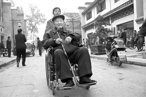 “盧爹,今天大盤(pán)怎么樣?”當(dāng)老人結(jié)束一天的看盤(pán),由他的保姆推著輪椅回到太平街時(shí),一路上都有人不斷地笑著向他詢問(wèn),而他只是呵呵笑著點(diǎn)頭示意。(記者龔磊文/圖)