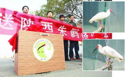 11月18日清晨,來自我省洋縣的兩只朱鹮從西安咸陽國際機場出發(fā),在省出入境檢驗檢疫局監(jiān)管下,被包機護送至上海后轉(zhuǎn)機飛赴日本。這是洋縣的朱鹮第三次告別生養(yǎng)自己的故鄉(xiāng),落戶日本國土。