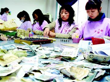 昨日下午,記者在公交公司收銀中心看到,10多名點鈔人員正在緊張清理各個公交線路收回來的大量零鈔,不到1小時,工作人員便清理出了一堆假幣、殘幣,其中還有游戲幣和冥幣。該中心主任林亞梅告訴記者,這都是一些惡意逃費的人干的,這些人在搭乘公交車的過程中,趁人多擁擠時,或將殘幣卷成一團,或將假幣迅速投入箱內,讓司機難以識別。更惡劣的是,個別人還使用游戲幣和冥幣充當車費投放。林主任說,在上述逃費行為中,投放游戲幣多是頑劣的學生,而投放殘幣、假幣和冥幣者則是惡意逃費者,有時一天多的時間,清理出來的冥幣多達數(shù)十元。