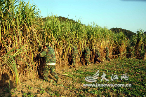 昨日下午3時(shí)許,由數(shù)十名德興市武警戰(zhàn)士、上饒市特警、德興公安民警以及民兵等人員組成的搜捕隊(duì)再一次來(lái)到付家墩,他們對(duì)付家墩村村后的百畝甘蔗進(jìn)行了全面搜查。