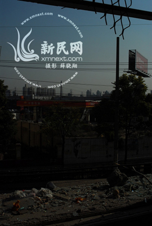 浦三路上的居民小區(qū)、商鋪很多,一些路人受了輕傷,店鋪的玻璃被砸破。浦三路830號是一家花鳥市場,距離爆炸現(xiàn)場約有300米遠(yuǎn)。在不到50平方米的花鳥市場空地上,全都是飛過來的碎石、管子。在市場門口,一輛自行車倒落在地,另外還有一輛裝有鐵板的三輪車,“他們的頭都被砸破了,全都送醫(yī)院去了!笔袌鰞(nèi)的一位王老板指著自己的腦袋說,“我當(dāng)時騎著助動車出去,就看到一大片石頭飛過來,我們幾個人都被砸到了,我都被砸了一個‘瘤’出來!