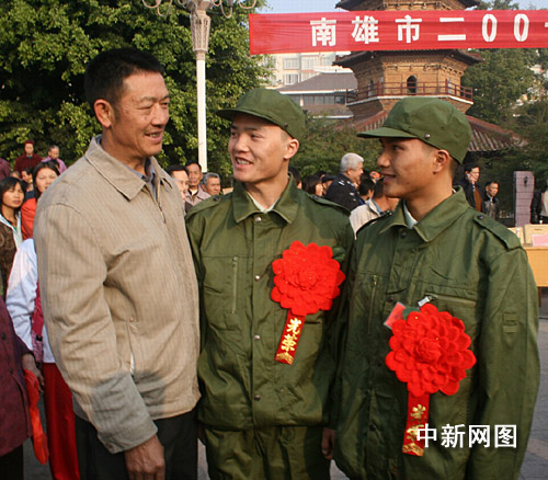 中新網(wǎng)韶關12月4日電(馮昶 李凌 朱祖純 李子亮)12月4日,粵北革命老區(qū)南雄市三影塔廣場人群涌動,紅花簇簇,一派喜氣洋洋的熱鬧場面,當?shù)卣谶@里舉行隆重的進藏新兵交接儀式。家住南雄市鄧坊鎮(zhèn)洋西村的一對畬族同胞兄弟藍旭東、藍善斌雙雙踏上了進藏當兵的旅程。