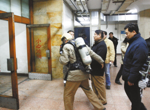 昨晚10時,雍和宮2號線地鐵站附近停著10余輛警車和消防車,3個出口已被民警封鎖,門前牌子寫著“請改乘其他交通工具”。被疏散的乘客都從B口撤離,“著火了,里面全是煙!倍嗝丝驼f。