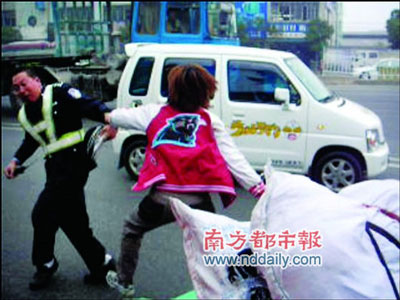 據(jù)目擊者介紹,約半個(gè)小時(shí)后,拖車人員趕到現(xiàn)場(chǎng),該婦女看到自己的車輛將要被拖走,情緒顯得更加激動(dòng),該女子一邊阻止拖車人員拖車,一邊破口大罵執(zhí)勤民警,繼而動(dòng)手扭打,追打民警至馬路中央,扯住民警的制服,造成民警頭部、手腕、前胸等部位受傷!疤珒戳耍司痛!”一個(gè)現(xiàn)場(chǎng)目擊者稱,該女子就像發(fā)了狂一樣,逮著誰(shuí)打誰(shuí),拖車工作人員多次上前勸阻,該女子一律拳腳相向,民警隨即通過總值請(qǐng)求110協(xié)助。110民警到達(dá)現(xiàn)場(chǎng)后,制止了事件的延續(xù)。