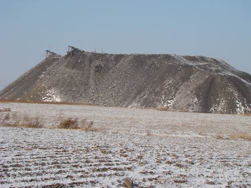 站在山坡的高處,可以看到七煤集團(tuán)向陽煤礦的很多礦井,這些礦井,都有一個相同的特點(diǎn),就是都有數(shù)目不等的廢礦石(煤矸石)山,它們占用的就是村民賴以生存的承包田。