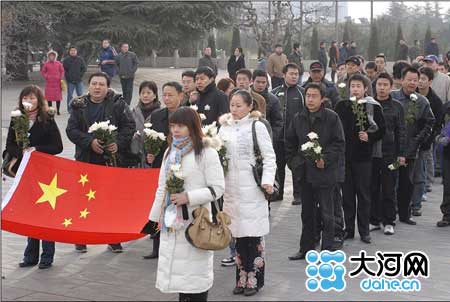 昨日,洛陽(yáng)約百名網(wǎng)友自發(fā)到洛陽(yáng)烈士陵園憑吊先烈。