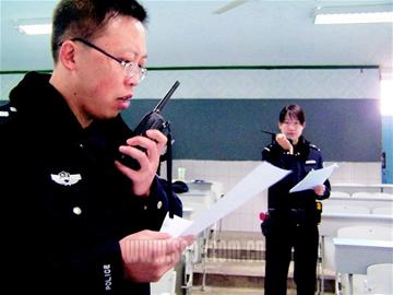9時(shí)至11時(shí),隊(duì)員2人一組,左手拿著數(shù)張全英文警情稿,右手拿對(duì)講機(jī),用英文進(jìn)行“實(shí)戰(zhàn)”通話。二名英語女教官不停地來回穿梭教室內(nèi)外,時(shí)不時(shí)對(duì)隊(duì)員們發(fā)音不準(zhǔn)之處進(jìn)行糾正和輔導(dǎo)。由于隊(duì)員們之間的通話和交流,均是英語,記者如聽“天書”,整個(gè)上午只聽懂他們每次說的最后一個(gè)單詞——over。