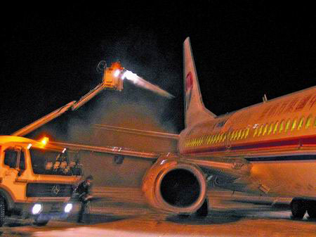 12日夜至13日凌晨,抓住老天爺休息的一小會(huì)兒,機(jī)場(chǎng)積極“反攻”,展開有史以來最大一次“破冰”作業(yè),本報(bào)記者對(duì)此進(jìn)行了全程追蹤。