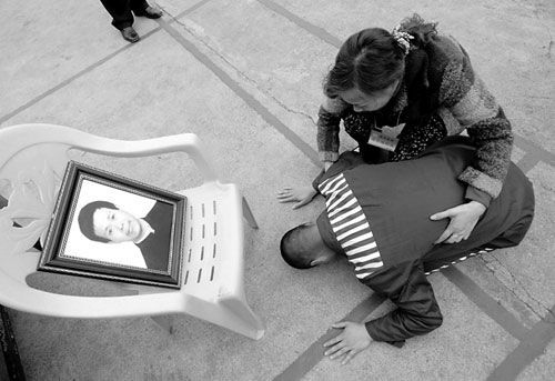 每一次俯身磕頭時(shí),他的額頭都重重地撞在地上。磕了幾十個(gè)響頭后,他哭得癱倒在地。當(dāng)眾人將他攙扶起來(lái)時(shí),只見(jiàn)他的額頭破了,留下一個(gè)血印。