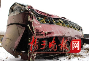 事發(fā)后,第一個(gè)從車(chē)內(nèi)爬出來(lái)的徐風(fēng)云,事發(fā)時(shí)就坐在駕駛員的后面。據(jù)其介紹,事發(fā)時(shí),路面已經(jīng)結(jié)冰,外面一片漆黑,大巴車(chē)下坡時(shí),猛然看見(jiàn)路中央有一輛翻倒的大貨車(chē),司機(jī)趕忙打方向盤(pán)右轉(zhuǎn),可能車(chē)速有點(diǎn)快,等其繞過(guò)后再想把方向打回來(lái)時(shí),已經(jīng)來(lái)不及了,車(chē)子一頭傾翻路右邊的砂廠(chǎng)里。