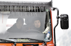 昨天上午,記者再次來(lái)到京珠北高寒路段,路面上結(jié)了白色的冰層,在33公里處西山大橋路面,冰層厚達(dá)兩厘米以上,車輛只能以極其緩慢的速度通行。此時(shí)車上的溫度計(jì)顯示車外氣溫是零下3℃。在云巖路段,記者看到積雪最厚處約有8厘米左右。