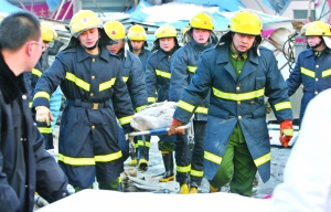 經(jīng)現(xiàn)場緊急搶救,受壓的4人已全部被救出,但在送往醫(yī)院途中不幸身亡。被砸傷的16名傷員中,有2人重傷,其他均為輕傷,無生命危險。