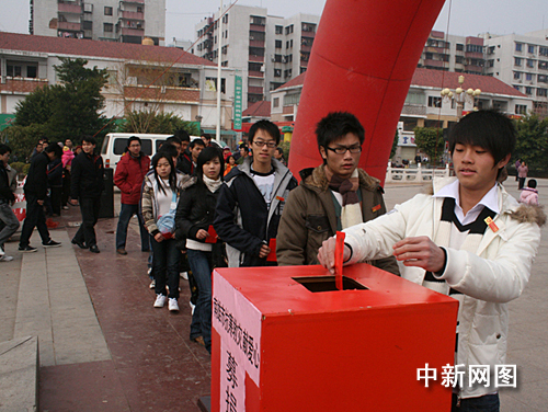 中新網(wǎng)韶關2月10日電 (馮昶 朱祖純 曾誠) 大年初三,廣東南雄市三影塔景區(qū)廣場內人流涌動,一場聲勢浩大的“我與災民心連心”募捐活動正在舉行,來自各條戰(zhàn)線的干部、企業(yè)等數(shù)千人紛紛伸出援助之手。引人注目的是一批當?shù)卦谕獯蚬さ那嗄耆恕W生和社團組織自發(fā)捐款,用真情表達對今年冰雪災區(qū)民眾的一片愛心。