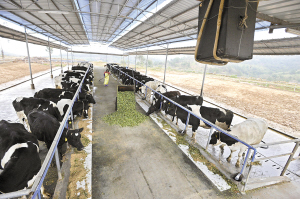 施先生說聽音樂可以消抵奶牛對(duì)奶牛場(chǎng)內(nèi)各種不利因素的應(yīng)激反應(yīng),從而使其情緒穩(wěn)定,增加食欲和食量,激活乳腺,使得泌乳加快、下乳順暢,提高產(chǎn)奶量。