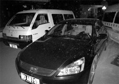 15日晚11時45分,渭南市中心醫(yī)院門診樓前的空地上,兩輛120急救車左右夾擊,將一輛黑色小轎車“困”在其中。這輛車牌號為陜OA8152的黑色轎車裝飾較為豪華,副駕駛的靠背平放,儀表盤上方有一本車輛行駛證。