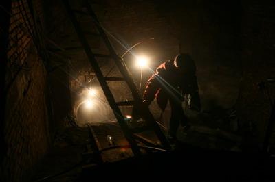 通過這道門檻再向里走5米遠,便是發(fā)生事故的井口,事發(fā)4天后,濃烈的火藥氣味仍從洞中散發(fā)出來。通往井下的滑軌處,礦工遺落的一只黑布鞋仍擺在那里。