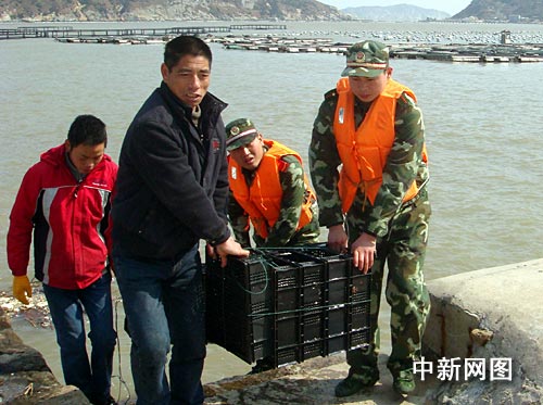 持續(xù)寒冷的天氣連魚也受不了,春節(jié)過后南麂島網(wǎng)箱里的養(yǎng)殖魚開始陸續(xù)出現(xiàn)凍死現(xiàn)象,魚排上漂浮著一條條被凍死的魚兒。災(zāi)情發(fā)生后,溫州邊防支隊(duì)南麂邊防派出所迅速組織官兵幫助漁民群眾清理打撈死魚,并及時(shí)將未凍死的魚轉(zhuǎn)移到溫室中進(jìn)行養(yǎng)殖,盡量降低災(zāi)害帶來(lái)的損失。