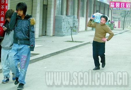 由于兒子楊曉勇在學(xué)校經(jīng)常勤工儉學(xué),老師和學(xué)校領(lǐng)導(dǎo)都對這個貧困的家庭有所了解,加上向自己的專業(yè)老師極力推薦,父親楊選明到成都的第二天就被安排了一堂著衣模特課。想到自己來這里是為了給兒子掙學(xué)費和生活費,老人慢慢忍受著教室里幾十名男女學(xué)生的目光和畫筆的雕琢!拔野阉麄兿胂蟪晌以谔沾蓮S做的一只只泡菜壇子,一下就適應(yīng)了!”那天,楊師傅掙了5元錢,很開心,他說這相當于十斤稻谷的錢了。