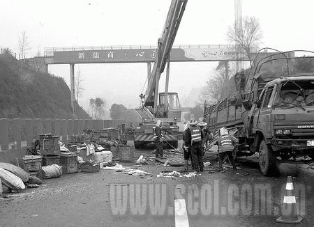 “成渝高速資中段出車禍了,鋪天蓋地的蜜蜂滿天飛,好嚇人喲!”昨日上午10時(shí),記者驅(qū)車前往資中。當(dāng)車行至成渝高速148公里處時(shí),被前方長(zhǎng)長(zhǎng)的車龍堵得無法動(dòng)彈。直至12時(shí)10分,記者才挪到事發(fā)地點(diǎn)。離事發(fā)地點(diǎn)500米處,高速路變成單行道。事故現(xiàn)場(chǎng),一輛車牌號(hào)為川D12695的加長(zhǎng)大貨車,已被吊至超車道上。幾名頭戴防蜂帽的工作人員正忙于將貨車拖離現(xiàn)場(chǎng)?砍嚨酪环降孛嫔希蚜藬(shù)十個(gè)被撞壞了的蜜蜂箱。高速路上空,全是密密麻麻滿天飛舞的蜜蜂群,“嗡嗡”之聲不絕于耳。地面上,躺著至少數(shù)十萬只蜜蜂的尸體。
