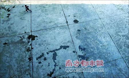 昨天中午12時(shí)許,佛岡縣第一小學(xué)操場(chǎng)上,兇案現(xiàn)場(chǎng)的血跡已被沖洗干凈。