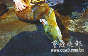 若貨積壓卻暫時辦不到證咋辦?“到黑市賣!”黃某說,去冬以來,他有130頭野山羊這樣賣出:60頭被人當年貨買走;30頭發(fā)貨到重慶城餐館;40頭運到秀山縣城的餐館。
