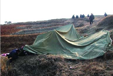 “我們這里一架飛機(jī)昨天墜毀了,駕駛員被送到縣里的醫(yī)院搶救,生死未卜!弊蛉丈衔纾浾吒鶕(jù)線索,驅(qū)車趕往駐馬店市泌陽(yáng)縣銅山風(fēng)景區(qū),見(jiàn)到了墜毀的飛機(jī)。有幾人看守著現(xiàn)場(chǎng),飛機(jī)已經(jīng)被人用帆布蓋住。帆布旁有夜里看守人員用的被子。