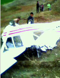 3月16日下午,駐馬店市銅山風(fēng)景區(qū),一架觀光飛機(jī)試飛時(shí),突然墜落在距起飛點(diǎn)約1公里的小山丘上。當(dāng)?shù)匾幻阡z地的農(nóng)民冒險(xiǎn)沖上去,營(yíng)救駕駛員,使駕駛員幸免于難。