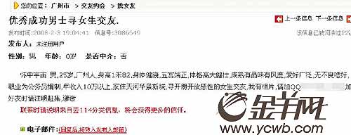“××銀行,呂××,身高182cm,外表看起來(lái)成熟有風(fēng)度,實(shí)際利用網(wǎng)絡(luò)騙取一夜情,我有一個(gè)朋友就被他騙了!他在××網(wǎng)上發(fā)布了交友信息,標(biāo)題為‘優(yōu)秀成功男士尋女生交友’,請(qǐng)各位網(wǎng)絡(luò)美女提高警惕!”